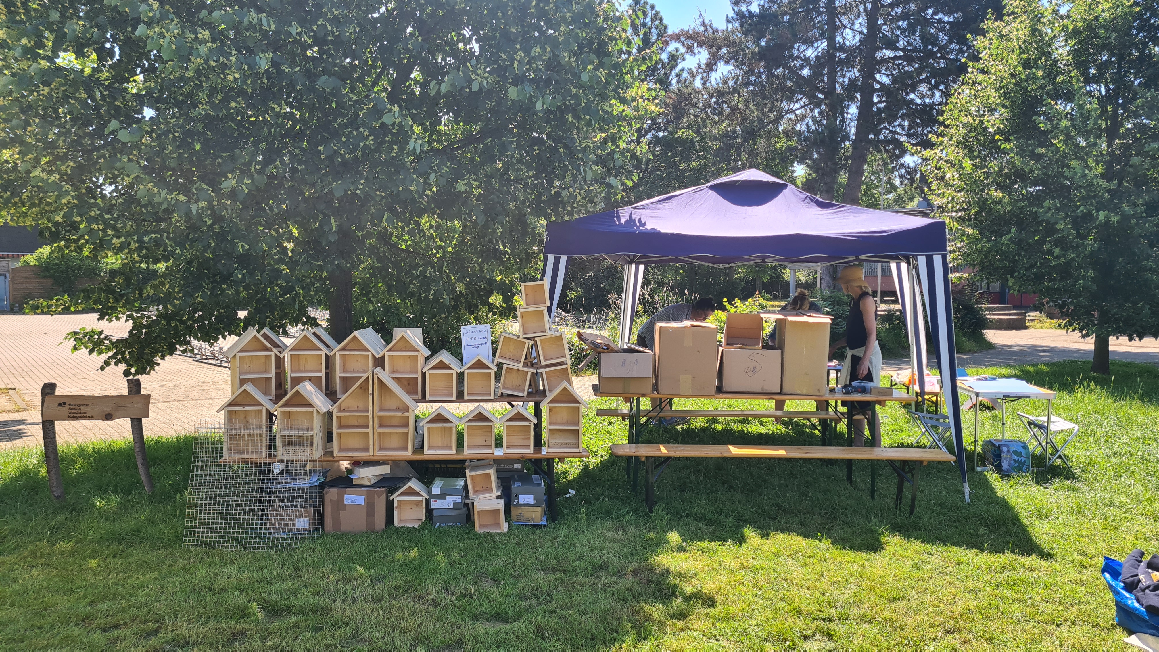 Das Fest am Samstag war ein großer Erfolg, die Wildbienen-Wohnungsbaugesellschaft hat viele Häuschen verkaufen können und die BSWR hat Kindern Spiele über Wildbienen gezeigt..